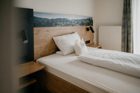 Our cozy and comfortably furnished rooms with shower/WC, TV, telephone, WLAN and partly balcony offer a friendly atmosphere with a unique view of nature. Here you can feel completely at home.